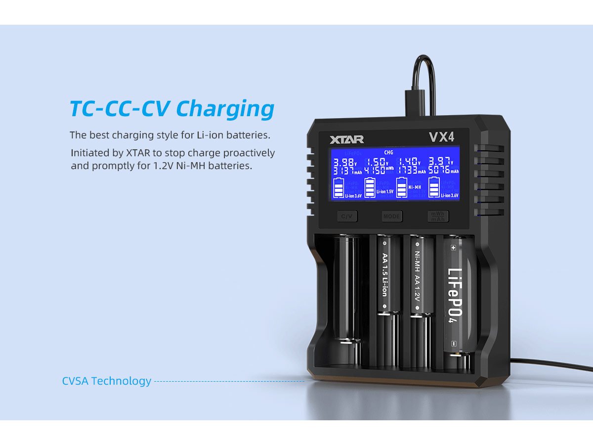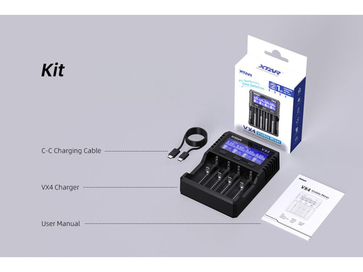 Xtar VX4 Visible Mixer 4-Bay Smart Charger - With or Without PD20W Adapter