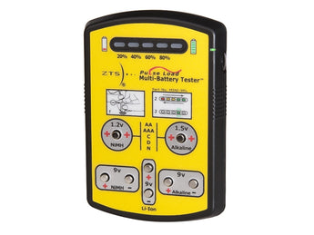 Keep your power sources in top shape with instant pulse load testsEnd your struggle with identifying and disposing of dead or dying batteries with a little help from the ZTS MINI-9RL, a compact multi-battery tester that makes power management a breeze. The MINI-9RL is capable of quick and easy pulse load tests that last about 2 seconds and let you know what percentage of charge remains in the battery. With several solid brass testing terminals, this tester can analyze Over 12 Battery Types, including all of the most common varieties. Simply touch the indicated battery terminal to the body of the MINI-9RL and hold the probe to the other end for a fast, easy and clear reading of battery power.
